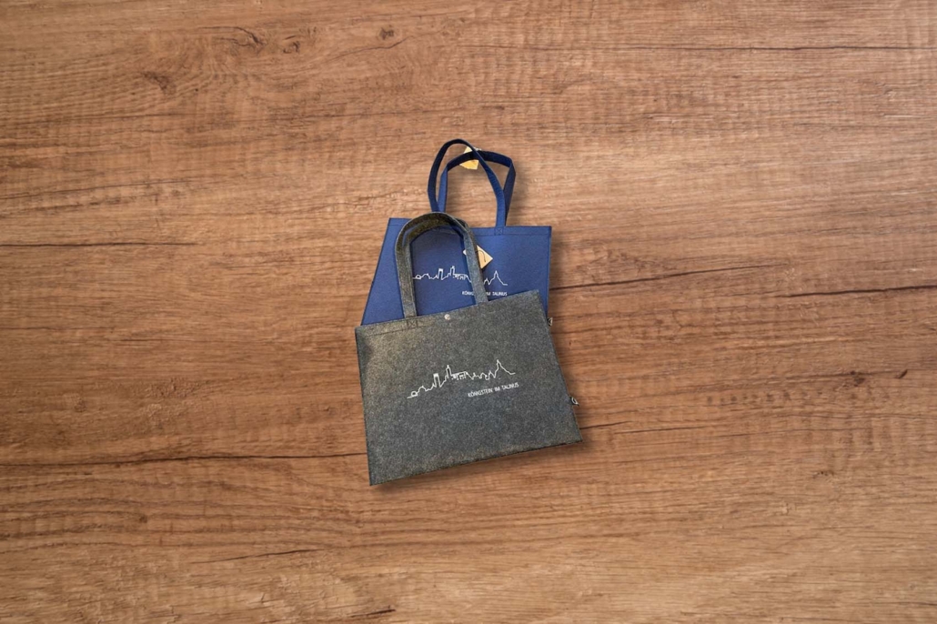 Diese coole, geräumige Einkaufstasche aus RPET-Filz mit Königstein Silhouette ist aus PET-Flaschen hergestellt. Sie bietet äußerst viel Platz und ist mit langen Griffen und einem Druckknopf ausgestattet. Das nachhaltige Material ist von hoher Qualität und somit eine ökologische, verantwortungsbewusste Wahl. Fassungsvermögen ca. 20 Liter.
